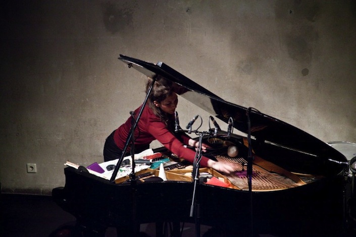 From John Cage onwards, the use of objects between the strings and the free use of the hands have become almost a mandatory practice, but perhaps the imagination of a “non-pianist” like Eve Risser truly was needed to transform the instrument into a inexhaustible source of unusual sounds, combined with consciousness and precision such as not to believe to it being a solo intervention.