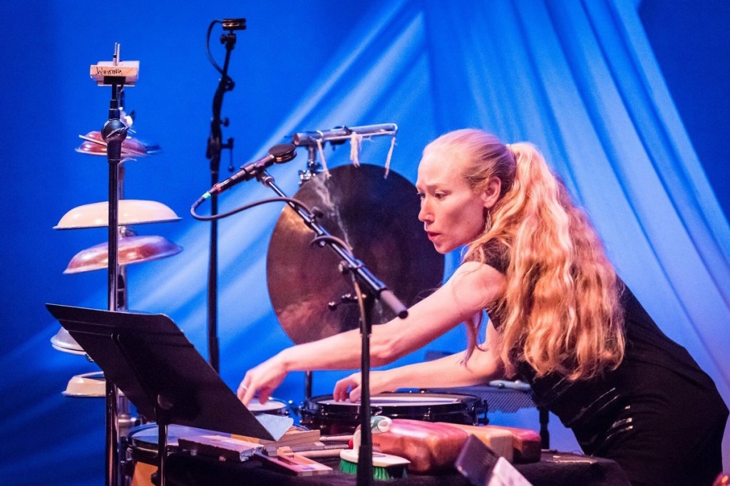 Il viaggio nella storia prosegue con un altro “scapigliato” delle avanguardie del secondo Novecento come Frederic Rzewski: “To the Earth” (1985) riprende un solenne inno omerico del 500 a.C. in onore di Gaia, ‘madre della vita’ di ogni creatura sul pianeta, utilizzando solamente quattro piccoli vasi d’argilla come sua essenziale guida melodica; così, attorno al recitar-cantato a mezza voce di Whiting, i quattro toni si intrecciano in pattern minimali dal cullante e ipnotico tintinnio, con occasionali accelerazioni che avvicinano ulteriormente il brano a un rituale esotico, al crocevia tra le danze dei gamelan indonesiani e l’ermetismo del teatro kabuki.