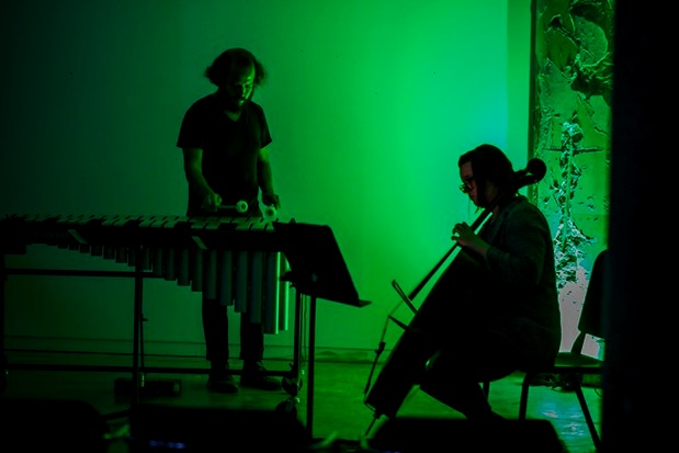 Not an idyllic pas de deux, then, but rather an eternal compromise between the fragile solipsisms of the cello and the twofold nature of percussion, the latter capable of lulling chimes remindful of childhood as much as of the most piercing screeching and overtones, produced with the bow or the mallet wood rubbed on the metal surfaces. But it is precisely in the most extreme contrasts that the profound meaning of this (knowingly) arduous test of execution and listening emerges: in it is reflected the grueling odyssey of everyday life, the absurd yet irrenounceable insistence of the close encounter between lovers, at once the most elementary and complex relational nucleus on which human existence is based.