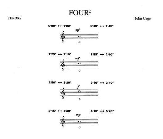 Avviene così che entro un lasso di tempo immutabile si verifichino infinite micro-variazioni tali da rendere ciascuna esecuzione un’istanza autonoma, mai riproducibile nello stesso modo. La partitura diviene uno spazio da colmare con precisione puntillistica, il cronometro uno strumento essenziale alla performance: i gesti sonori possono allora incontrarsi tra loro come divergere, laddove l’unico parametro ineludibile è l’altezza, mentre la durata e la dinamica di ciascun frammento sono a discrezione degli interpreti, purché rispettose dei limiti parentetici.
